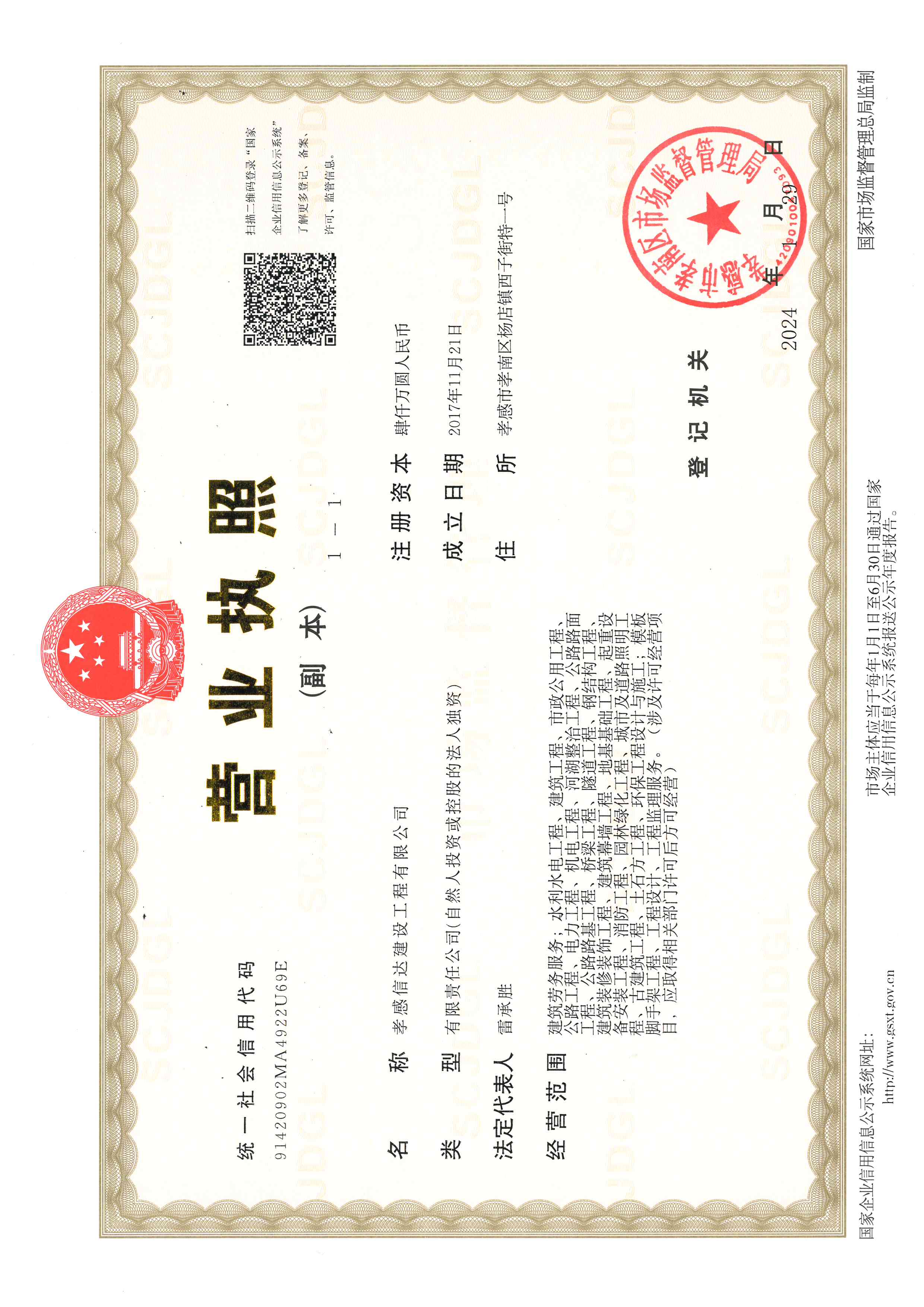 我公司擁有市政公用工程施工總承包貳級、環(huán)保工程專業(yè)承包貳級及水利水電工程施工總承包貳級資質(zhì),經(jīng)營范圍:建筑勞務(wù)服務(wù);水利水電工程、建筑工程、市政公用工程、公路工程、電力工程、機(jī)電工程、河湖整治工程、公路路面工程、公路路基工程、橋梁工程、隧道工程、鋼結(jié)構(gòu)工程、建筑裝修裝飾工程、建筑幕墻工程、地基基礎(chǔ)工程、起重設(shè)備安裝工程、消防工程、園林綠化工程、城市及道路照明工程、古建筑工程、土石方工程、環(huán)保工程設(shè)計(jì)與施工;模板腳手架工程、工程設(shè)計(jì)、工程監(jiān)理服務(wù)等。